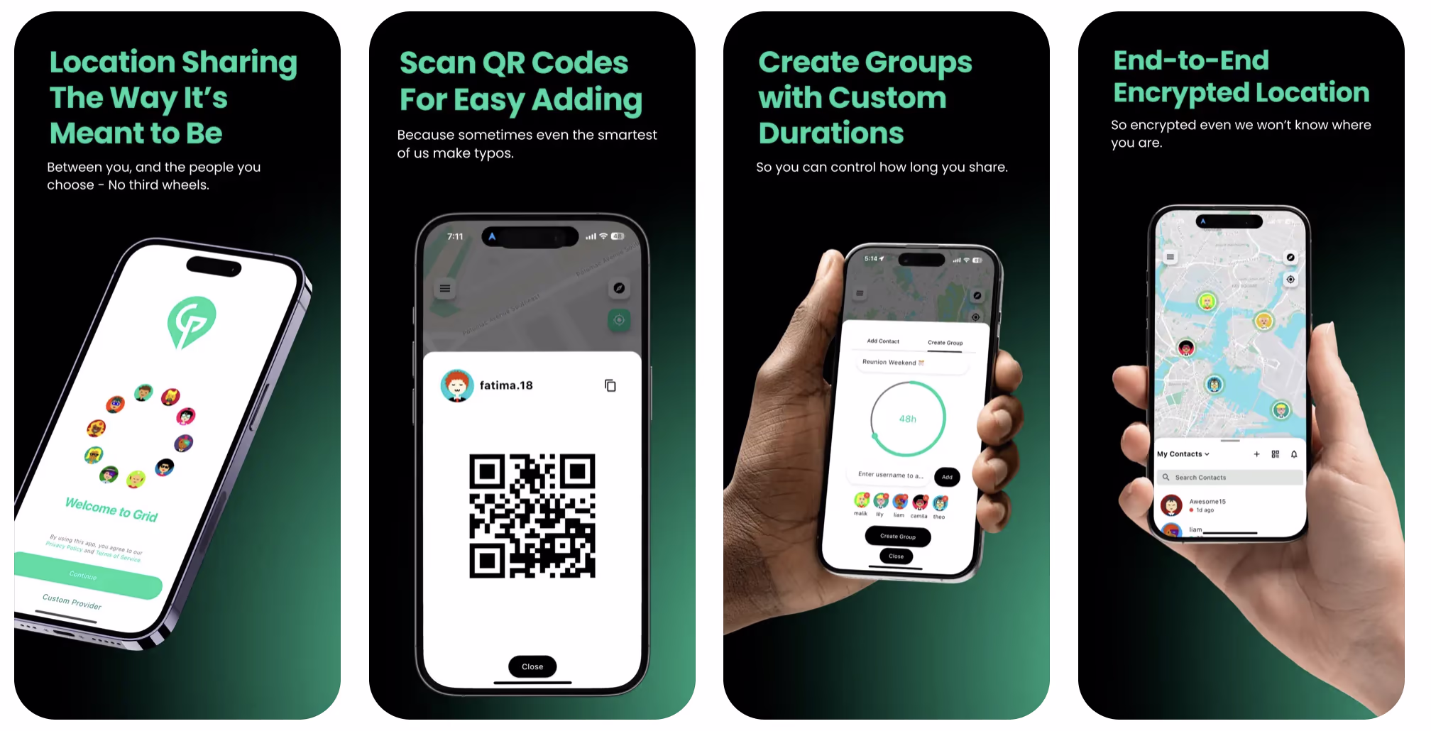 Grid enables secure location sharing through both 1:1 and group conversations, with thoughtful privacy features like sharing expiration times and incognito mode. The app utilizes Protomaps hosted on Cloudflare, eliminating any dependency on Google Maps or Apple Maps while maintaining full functionality.